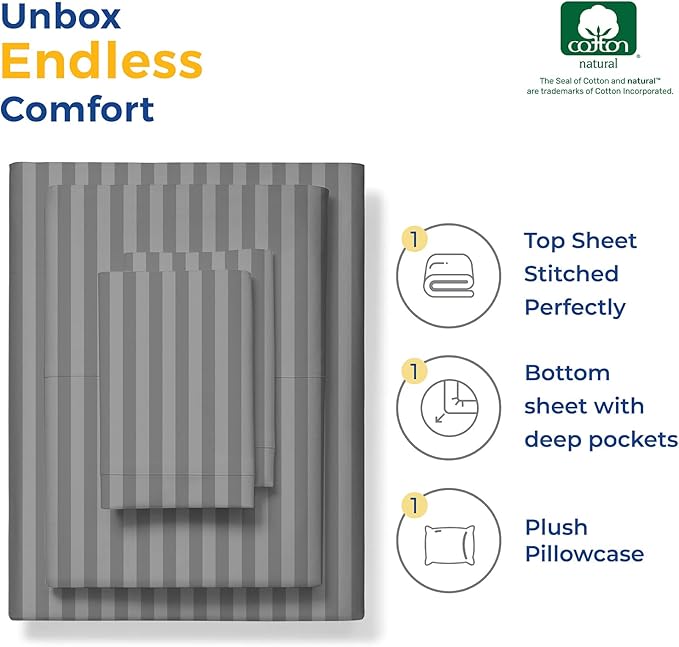 About This ✔ 100% EGYPTIAN COTTON STRIPED SHEETS THAT ARE SMOOTH & SILKY: Experience the luxurious comfort of damask sheets...