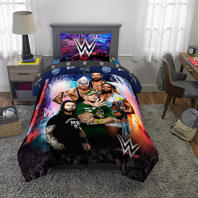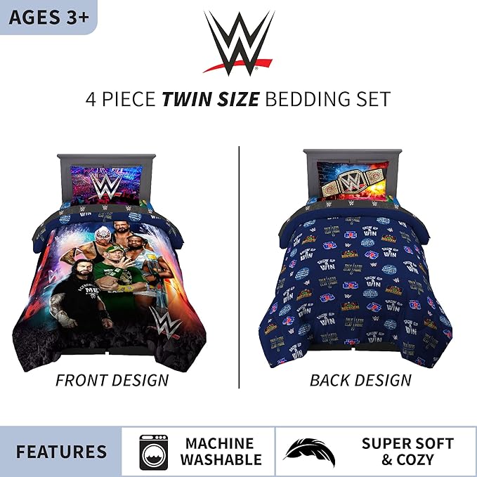 Franco Kids Bedding Super Soft Comforter and Sheet Set, 4 Piece Twin Size, WWE