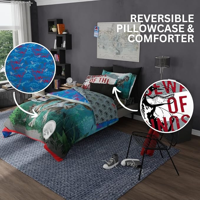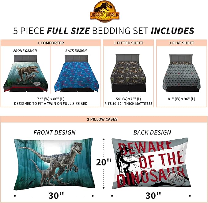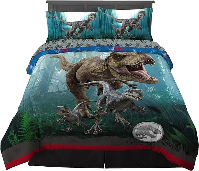 Franco Kids Bedding Super Soft Comforter and Sheet Set, 5 Piece Full Size, Jurassic World Dominion