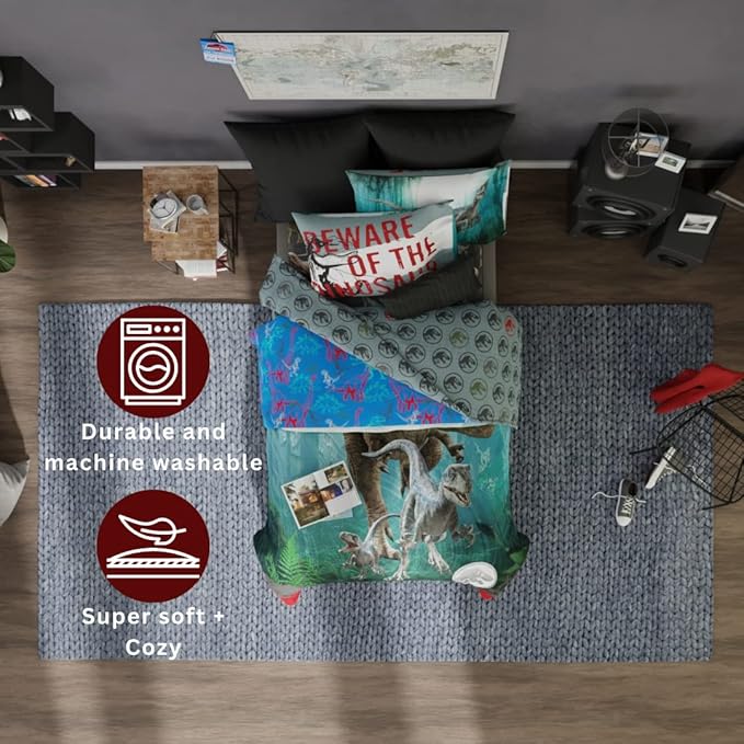 About This 100% Microfiber JURASSIC WORLD 3 DOMINION DESIGN: Unleash the power of prehistoric style in your child's bedroom with...