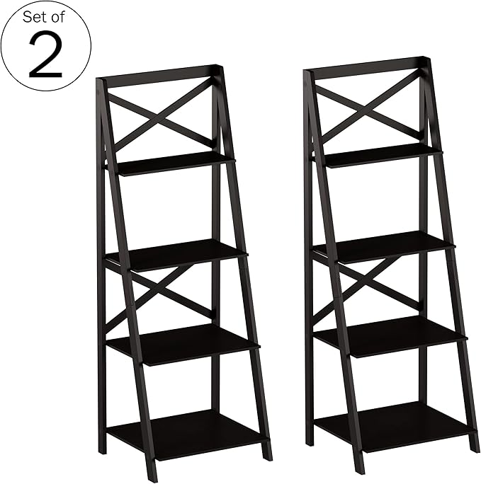 Lavish Home 4-Tier Ladder Bookshelf Set – Set of 2 Free Standing Wooden Living Room Shelves – Decorative Bookcases for Home and Office (Black)