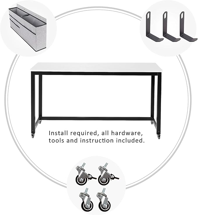 About This MINIMALIST DESIGN: Simple and modern AHB rolling computer desk features industrial rustic brown tabletop and metal frame. It...