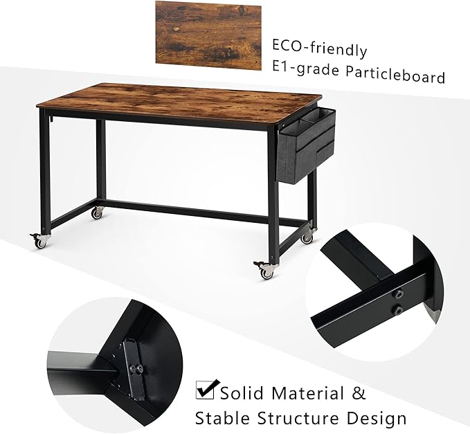 • MINIMALIST DESIGN: Simple and modern AHB rolling computer desk features industrial rustic brown tabletop and metal frame. It is suitable for most interior decoration styles, whether it's in the living room, study room,office and schoolroom.
