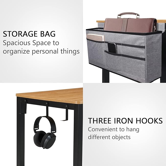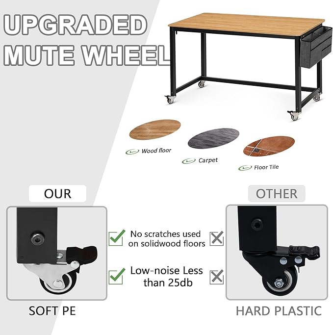 AHB 55" Rolling Computer Desk with 4 Smooth Wheels, Simple Style Mobile Writing Desk Home Office Study Table Movable Workstation with Metal Frame
