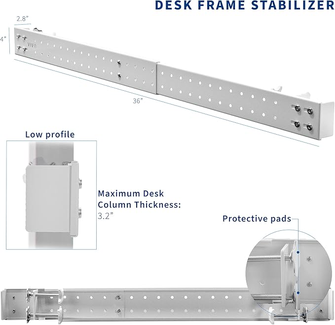 About This Desk Frame Support - DESK-STB01W is a universal desk stabilizer bar that clamps onto your current desk frame...