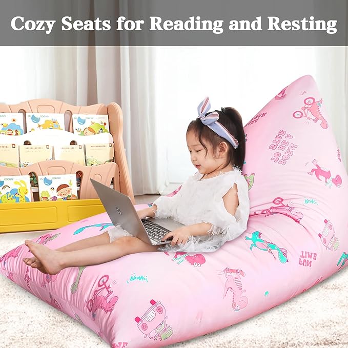 Jorbest Stuffed Animal Storage, Dinosaur Bean Bag Chair, Stuffed Animal Storage Bean Bag Chair for Kids and Adults, Pink Dinosaur Bean Bag for Girls - Cover ONLY (Dinosaur 200L/52 Gal)