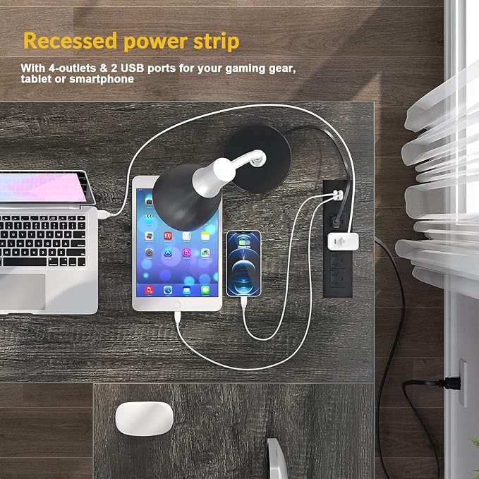 About This 【USB Charging Ports & Power Outlets 】 The L-shaped computer desk is built in 4 Power outlets and...