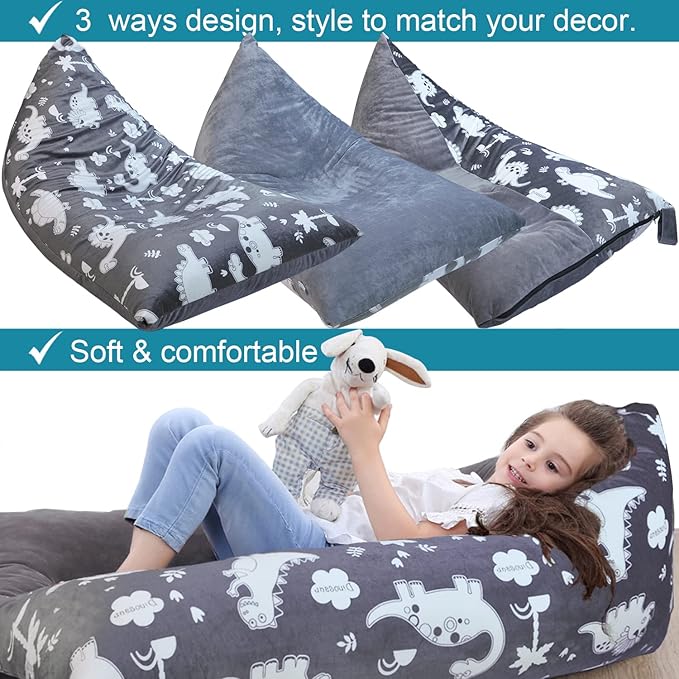 Stuffed Animal Storage Bean Bag Chair Cover | 53" Extra Large Beanbag for Kids and Adults, Plush Toys Holder and Organizer for Boys and Girls | Premium Velvet - Soft & Comfortable (Dinosaurs)