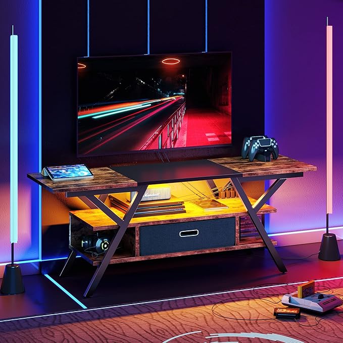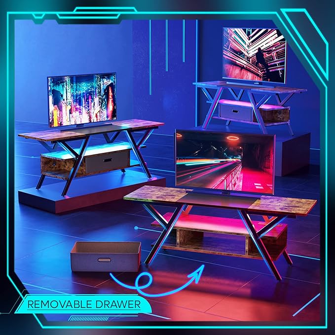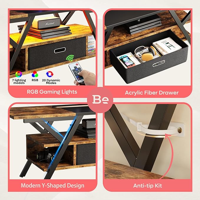 About This 【Safe & Tidy 】Get mad with messy cords behind your tv stand? No worry, Bestier RGB tv stand...