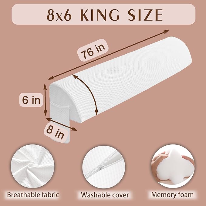 Bed Wedge Pillow for Headboard Gap Bed Mattress Gap Filler(0-6'') Memory Foam Bed Crack Headboard Pillow Stopper to Close The Gap Between Headboard Wall and Mattress Space Filler King