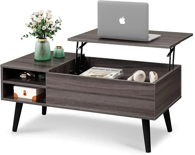 WLIVE Lift Top Coffee Table with Storage for Living Room,Small Hidden Compartment and Adjustable Shelf,Mid Century, Modern ,Wood,Grey