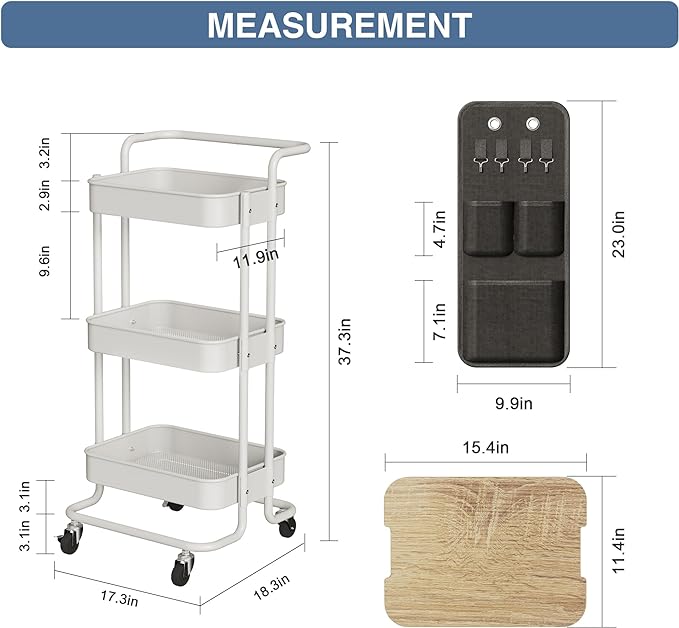 About This 【Mesh Metal Trays & Large Storage Space】This metal rolling cart is made of high-quality metal and comes with...