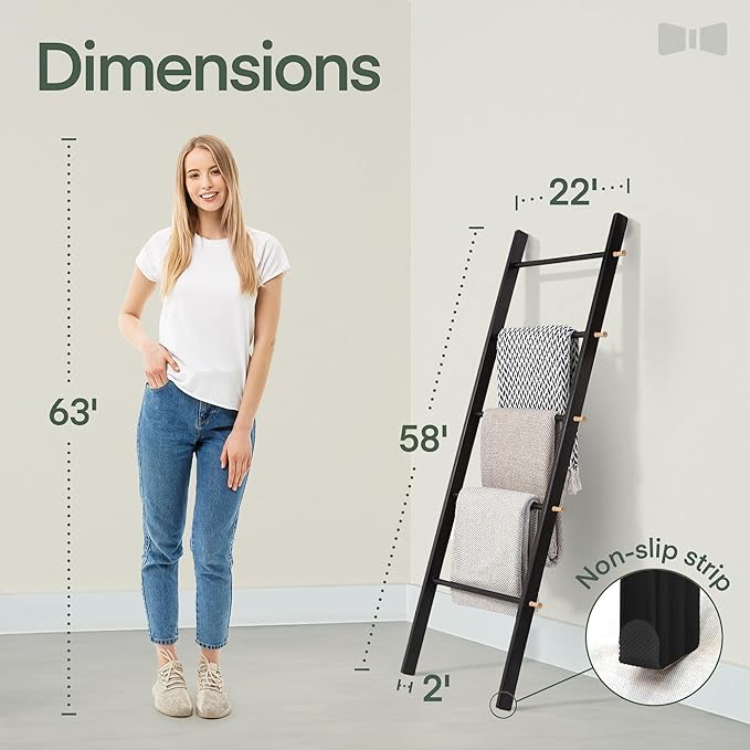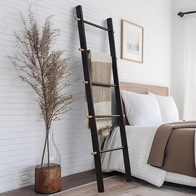 5 Ft Wooden Blanket Ladder Farmhouse - Quilt Ladder for Bedroom - Wood Ladder Decor - Decorative Ladder for Blankets - Easy to Assemble - Farmhouse Ladder Blanket Holder - Wooden Ladder for Blankets