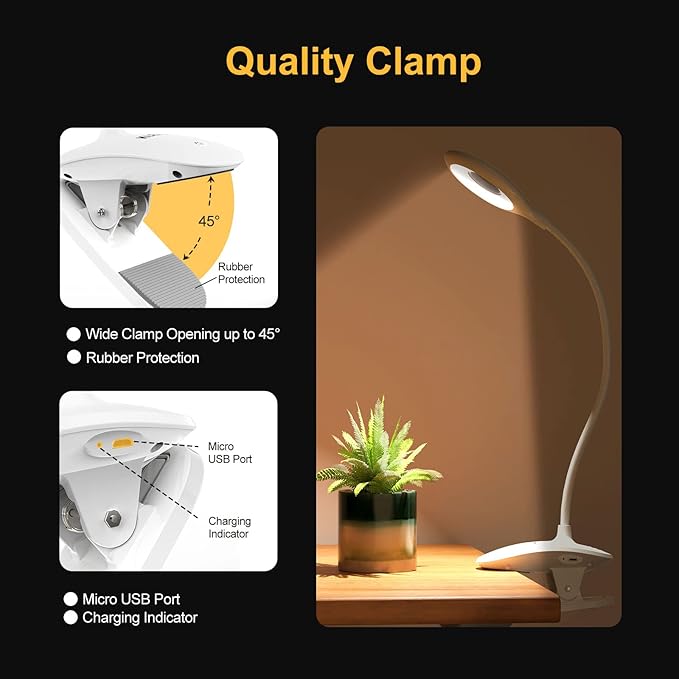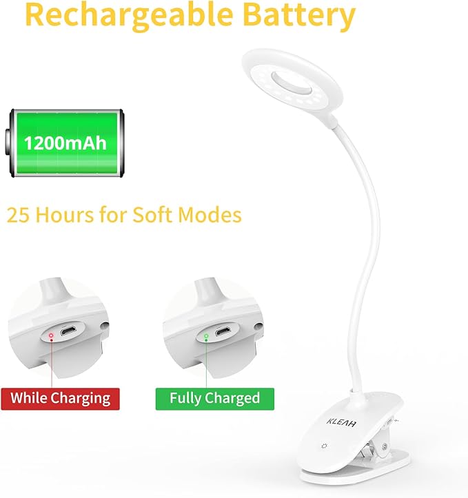 About This 【PORTABLE & POWERFUL】: Rechargeable battery powered clip on lamp provides up to 25 hrs eye-protection light source under...