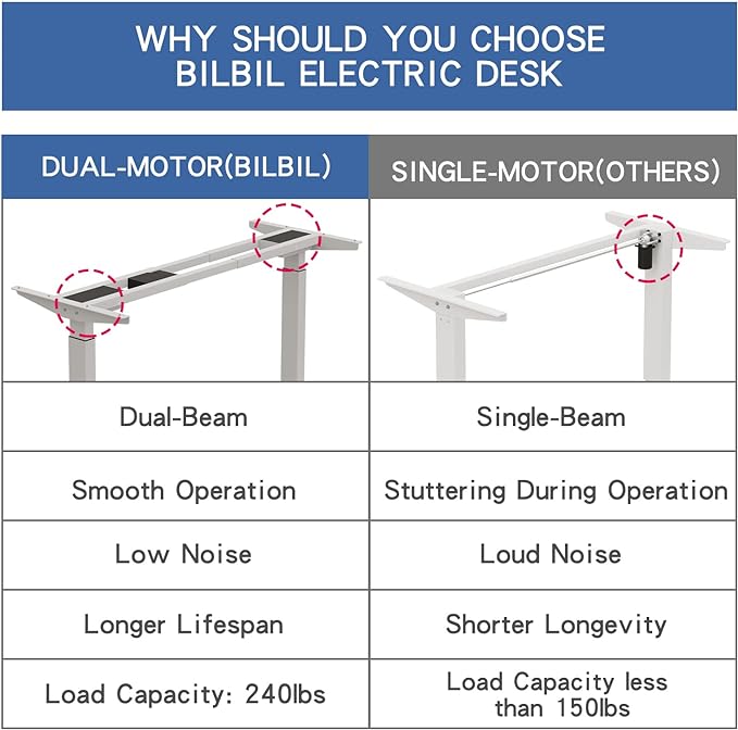 About This BilBil Dual Motor System Standing Desk Frame offers smoother height adjustments, at a faster speed with lower noise...
