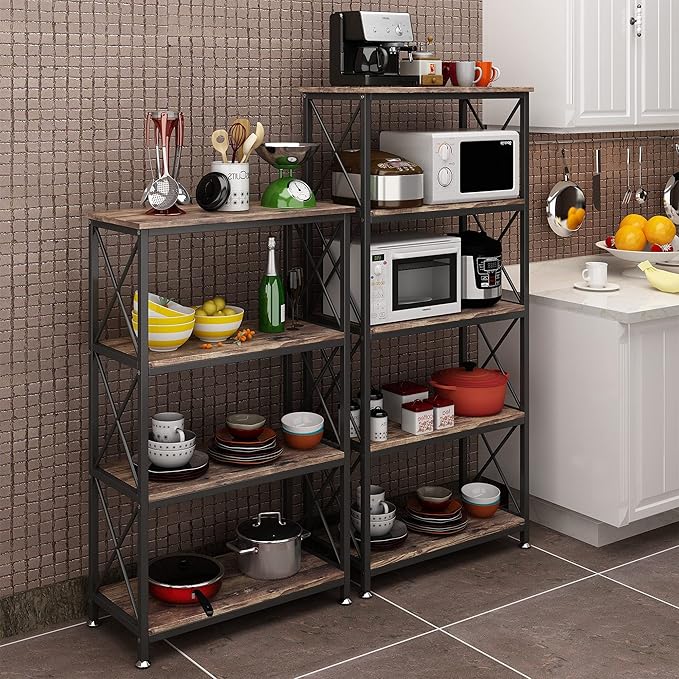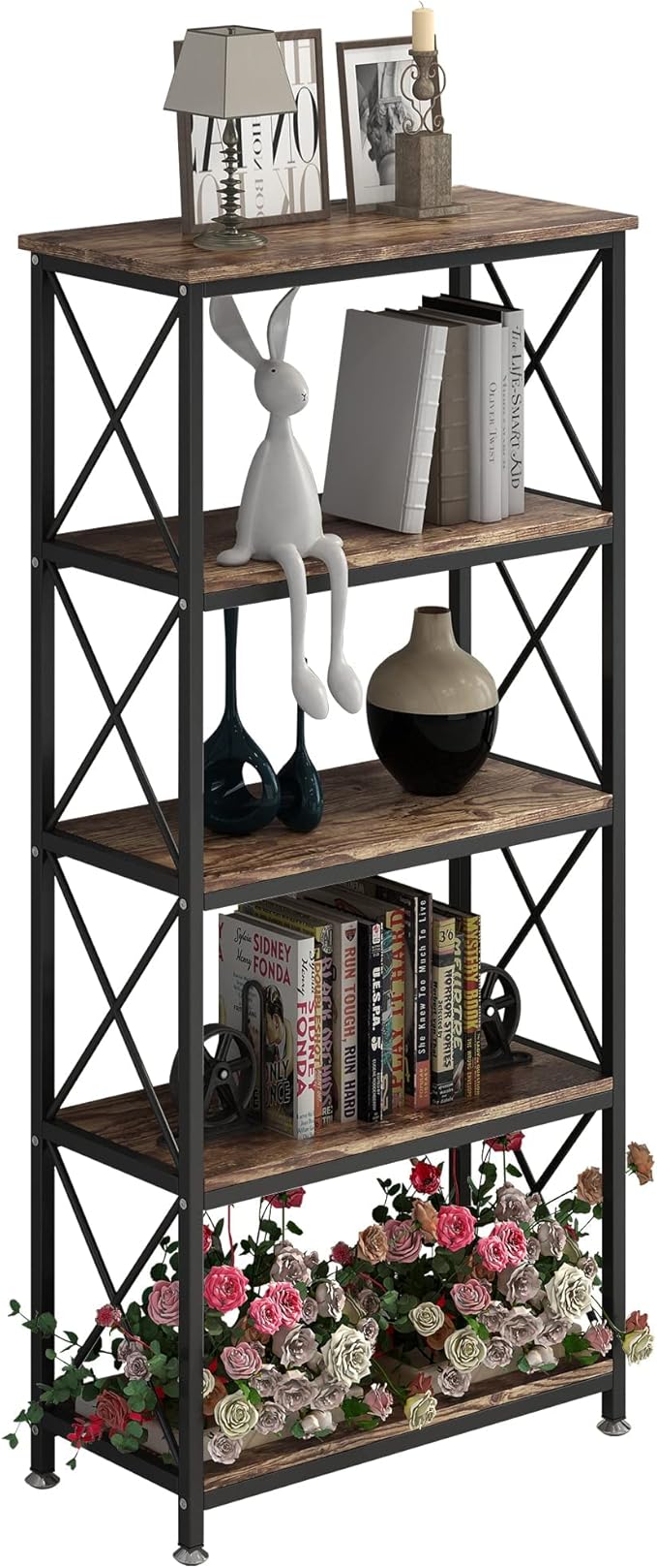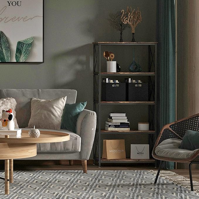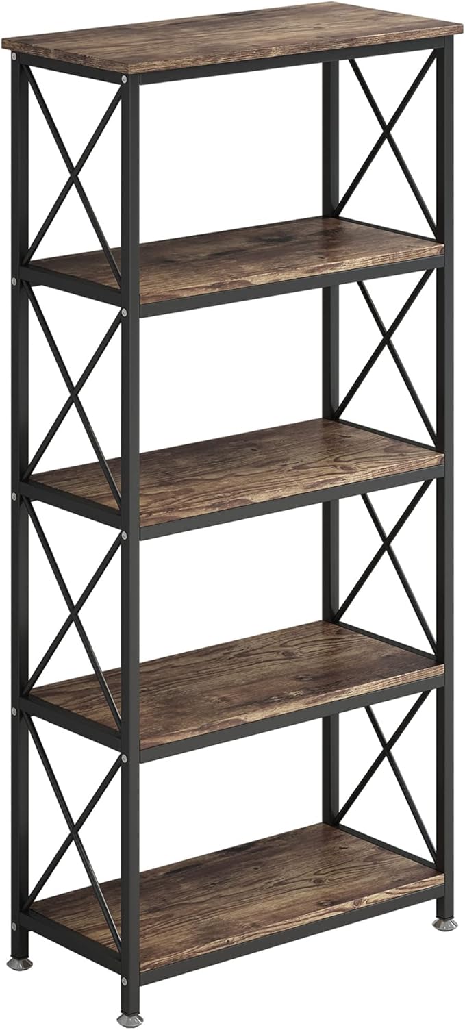 4NM Bookshelf 5 Tier Industrial Bookcase Home Office Adjustable Bookshelves Storage Shelves Organizer Vintage Book Shelf Display Rack for Living Room, Bedroom,Home (Rustic Brown and Black)