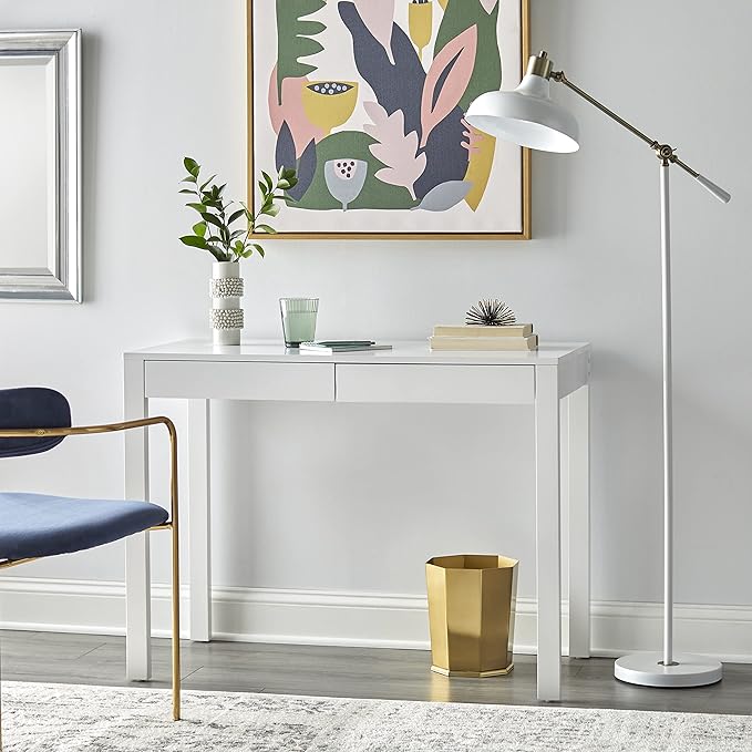 Target Marketing Systems Gabby Home Office, Study Room, Vanity or Bedroom, Computer 2 Drawers, Contemporary Style Desk with Storage, 40” x 20”, White