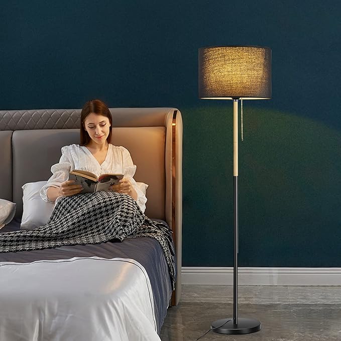 About This 【Modern Floor Lamp with Pull Chain Switch】 This floor lamp comes with an easy-reach pull chain switch, allowing...