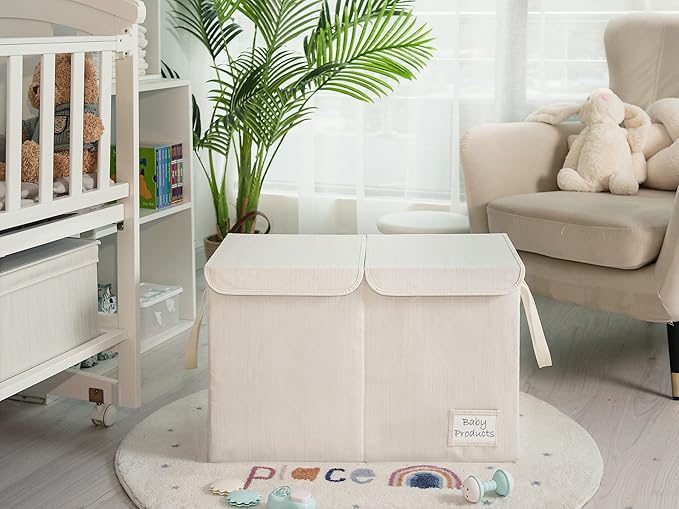 StorageWorks Toy Storage Organizer with Flip-Top Lids, Toy Bins for Living Room, Nursery Room, Playroom, Large Toy Chest for Kids, Mixing of Beige, White & Ivory, 24 ¾"L x 13" W x 16" H