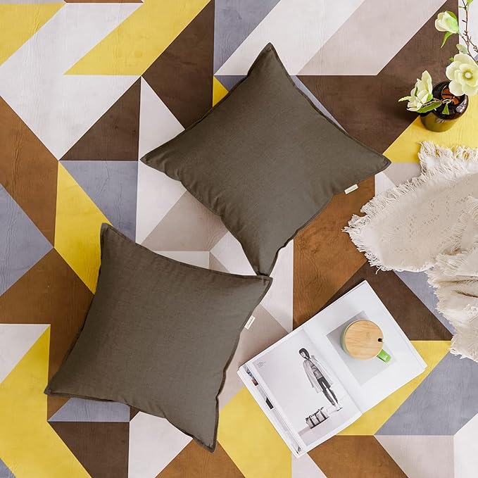 Jeanerlor 18"x18" Solid Cotton Linen Decoration Throw Pillow Case with Zipper Euro Sham Cushion Case Cool Pillow Cover Delicate Decorative Pillowcase for Chair/Bed/Couch,2 Packs, Khaki