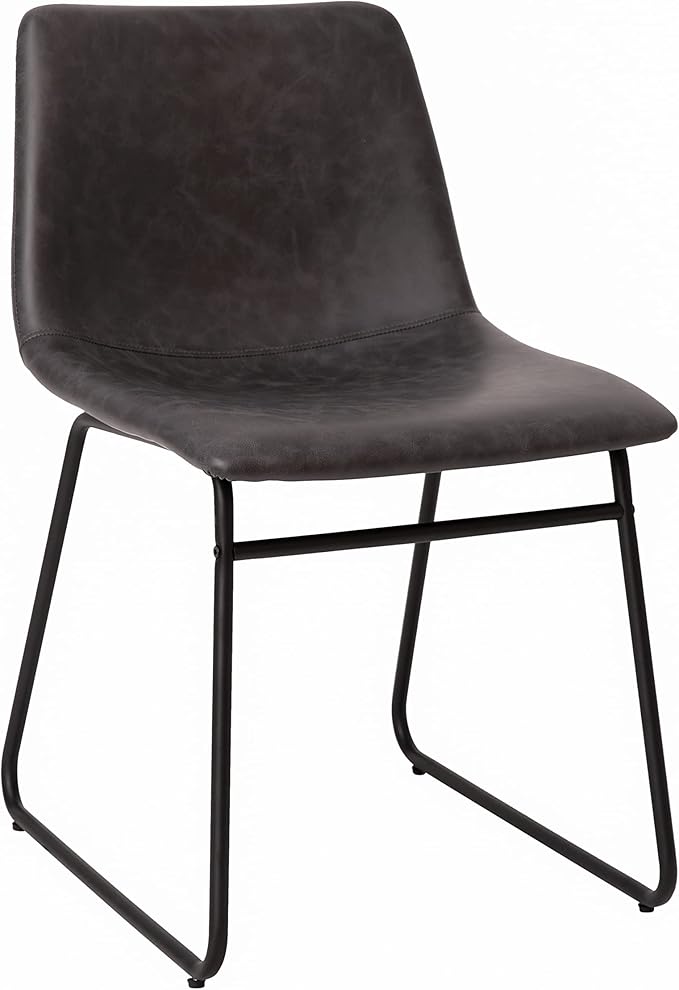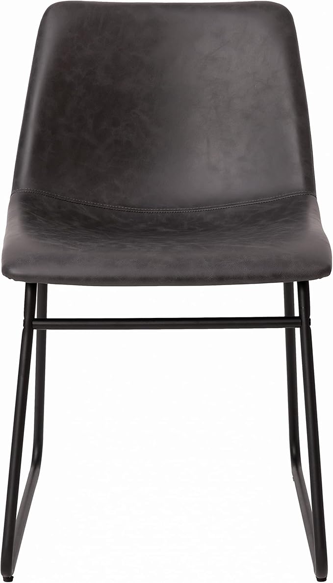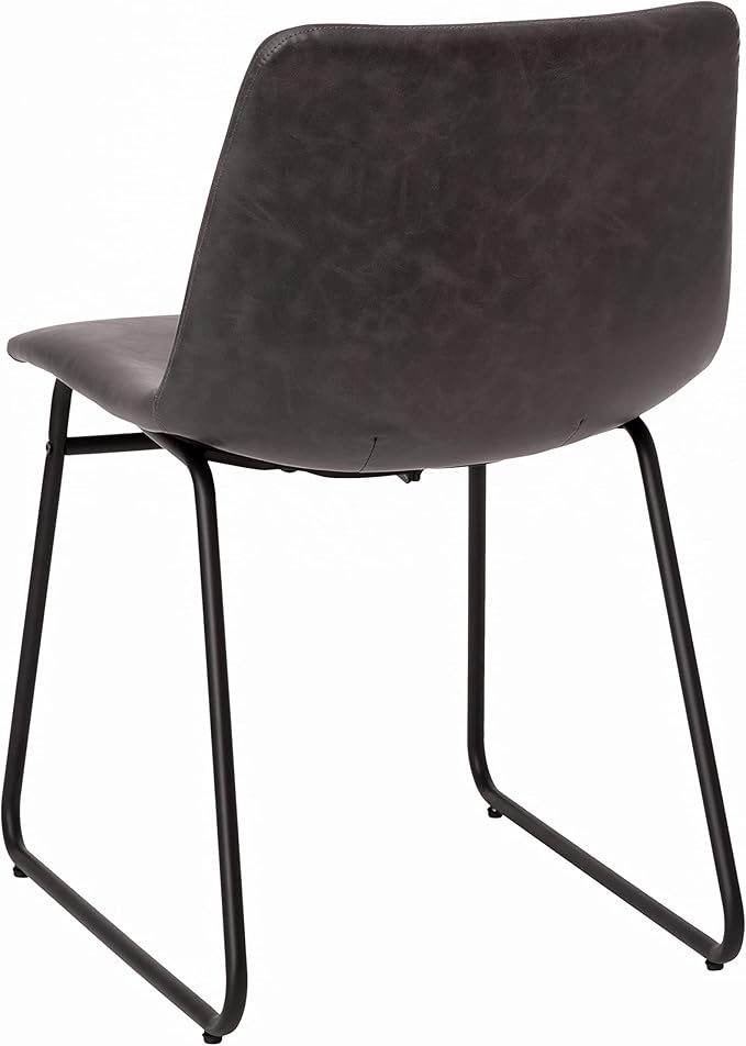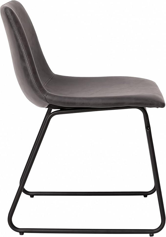 Flash Furniture Butler 18 Inch Commercial Grade LeatherSoft Dining Table Height Chair, Mid-Back Black Sled Base with Dark Gray LeatherSoft Upholstery, Set of 2