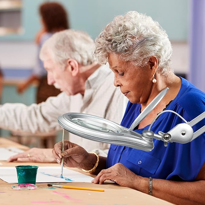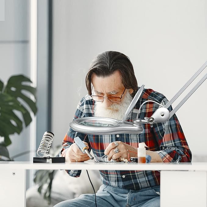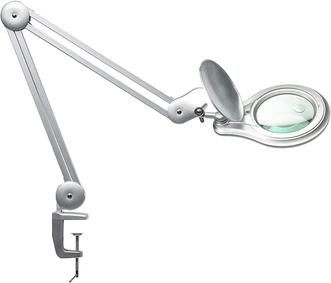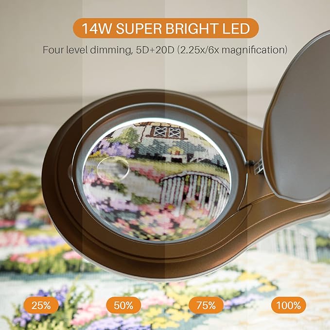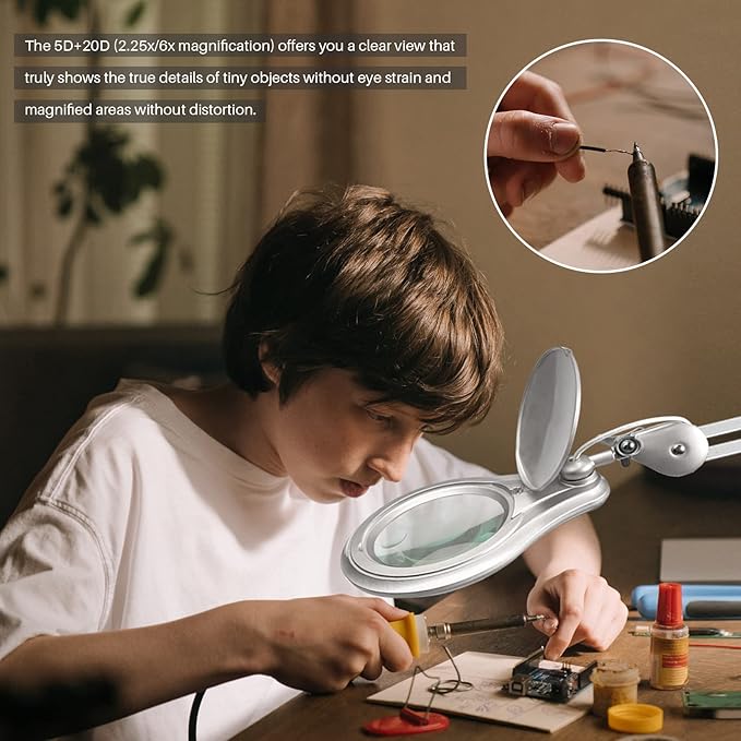 Bifocals LED Magnifying Lamp with Clamp, 5 Diopter with 20 Diopter, 5 Inch Magnifier Glass Lens, 1200 Lumens Dimmable Magnifier Lamp for Desk Craft Hobby with 60PCS Bright LEDs