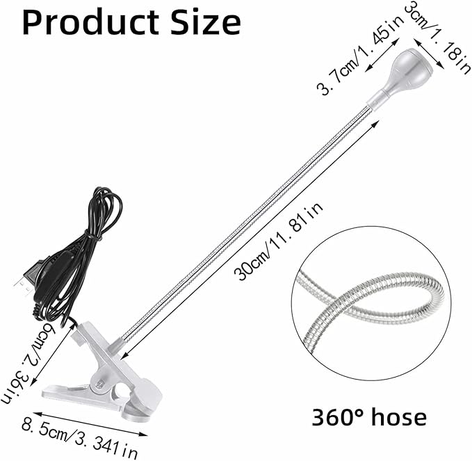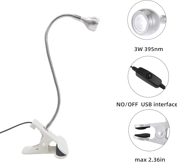 UV Nail Lamp, UV Light for Nails UV LED Light Fixtures with Gooseneck and Clamp Mini Desk Light Clamp Portable Gooseneck for Outdoor Stall Gel Nail Curing, 5V USB Input (Slive,Round Head)