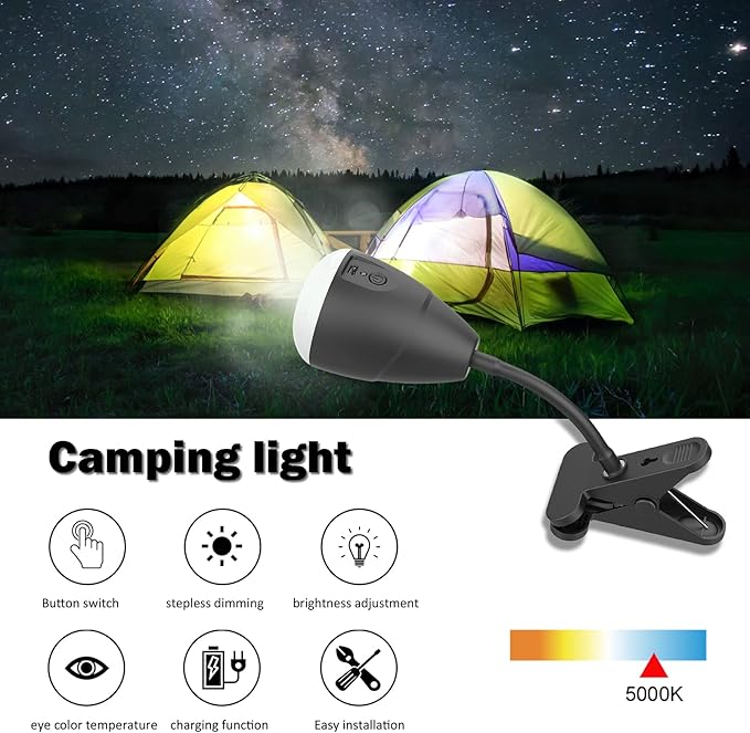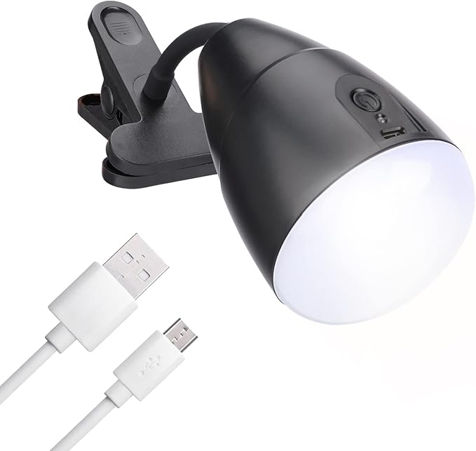 Afirst Clip on Light Outdoor Camping Light LED Clamp Lamp for Desk 4400mAh, Rechargeable Flexible Dimmable Lighting Reading Study Table Lamp, 11 Inches