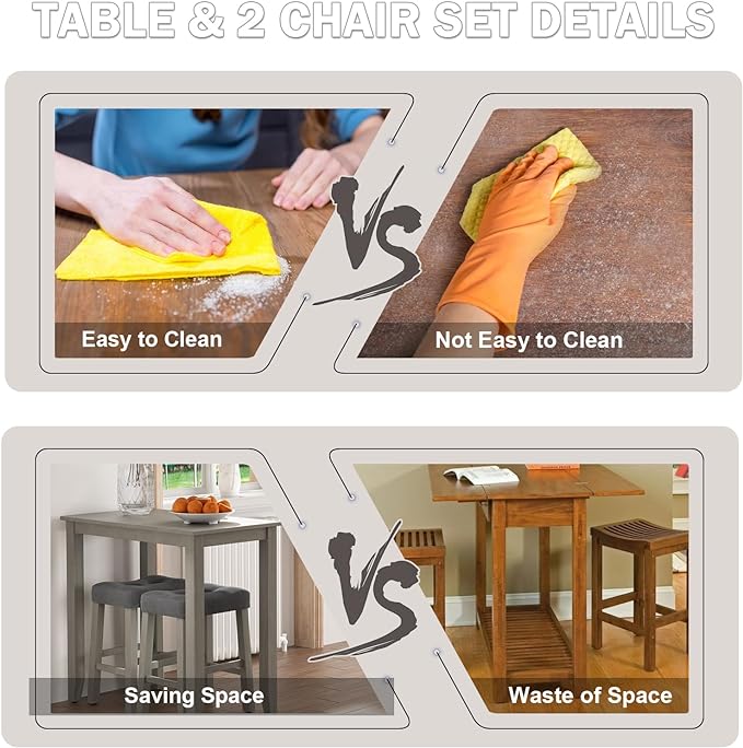 About This Wood 👍【3 Pieces Dining Table Set Design】The 3-Piece dining set comes with a rectangular table and 2 stools...