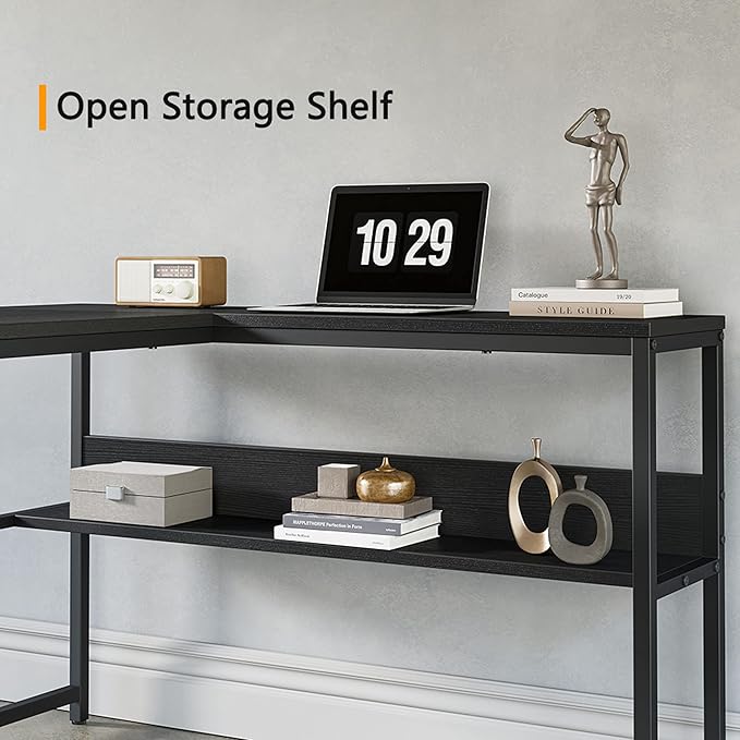 CubiCubi L Shaped Desk, 55.1 inch Corner Computer Desk with Storage Shelves, Home Office Desk with Bookshelf for Writing Gaming Study, Black