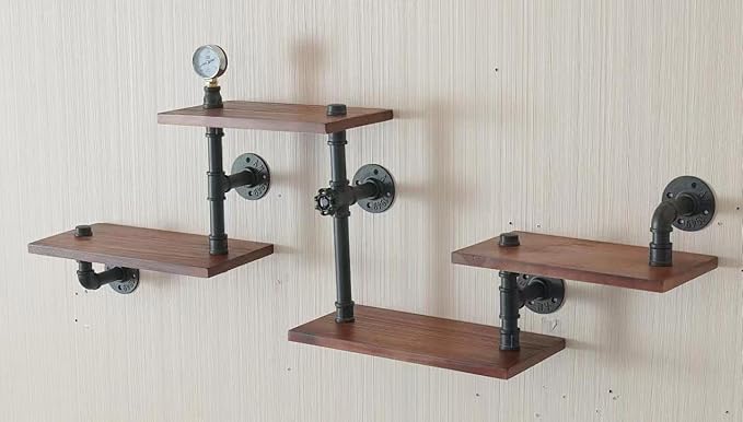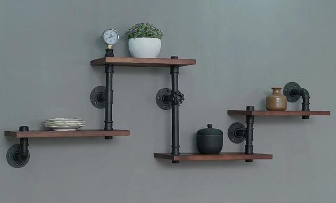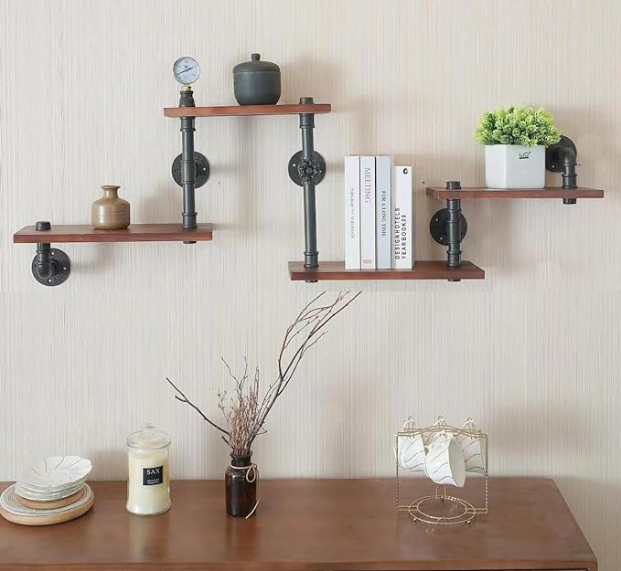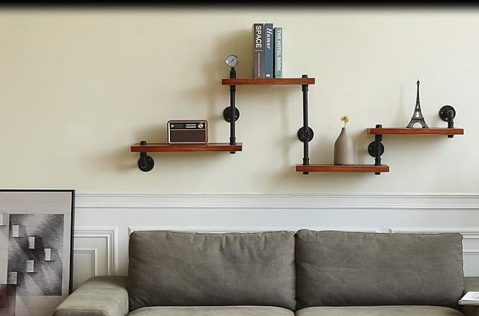 About This 1.Attractive Appearance Industrial Wall Shelves - Elevate your living room’s aesthetic appeal with the 4-tier Staggered Pipe Floating...
