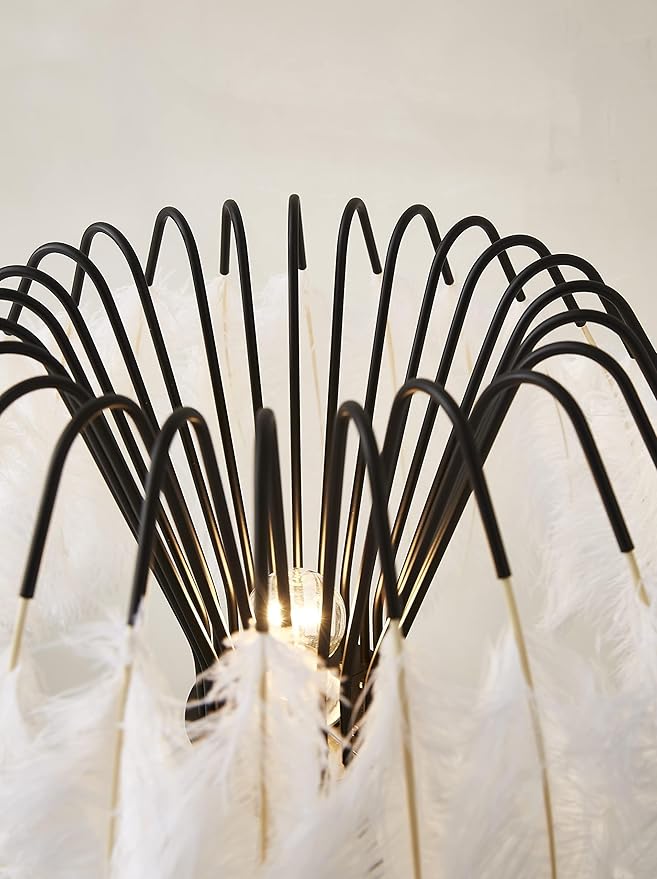 White Feather Lamp, Elegant Floor Lamp for Bedroom, Living Room (Black)