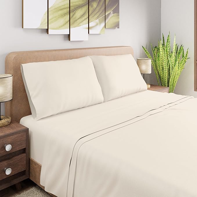 Purity Home Organic 100% Cotton Ivory Full Size Bed Sheets, Percale Weave Cotton Sheet Set for Full Size Bed, Crisp, Cooling & Breathable Bed Sheets, Fits Mattress Upto 16" Deep Pocket