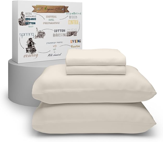 Purity Home Organic 100% Cotton Percale Twin XL Sheets Set Ivory, TwinXL Bed Sheets Set for Dorm Bed, 14" Deep Pockets Cotton Sheet Set, Breathable & Cooling Ivory Sheets for Hot Sleepers