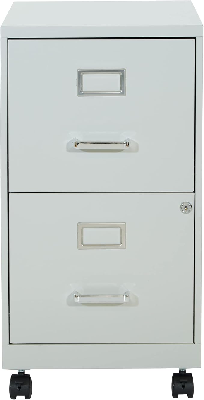 OSP Home Furnishings 2 Drawer Mobile Locking Metal File Cabinet, Grey