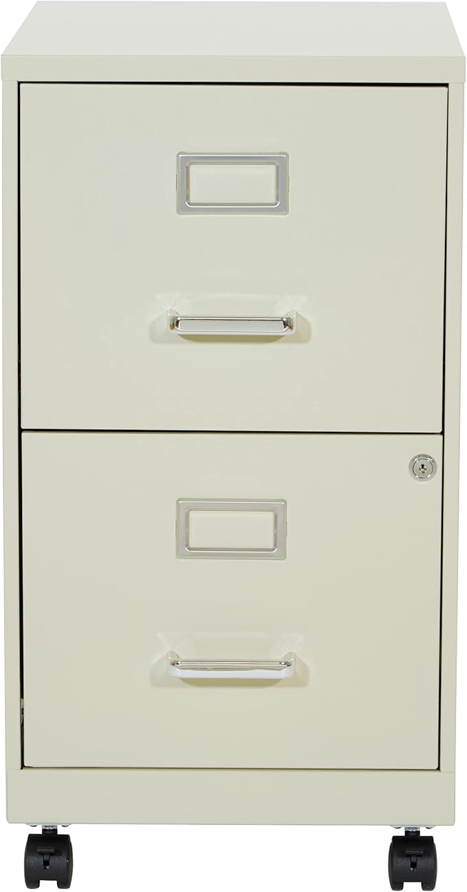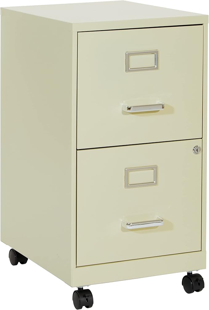 OSP Home Furnishings 2 Drawer Mobile Locking Metal File Cabinet, Tan