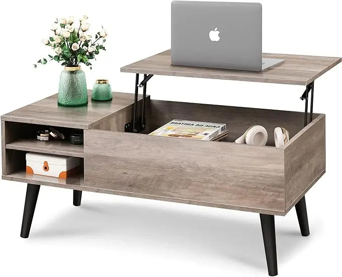WLIVE Lift Top Coffee Table with Storage for Living Room,Small Hidden Compartment and Adjustable Shelf,Mid Century Modern ,Wood,Greige