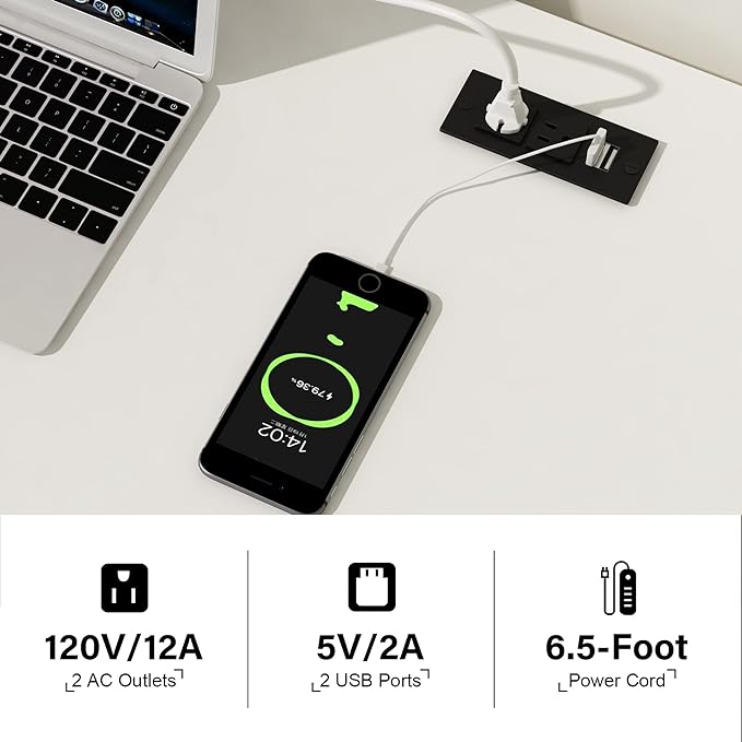 About This 【USB Charging Ports & Power Outlets 】ChooChoo computer desk includes a built-in socket with 2-Outlet & 2 USB...