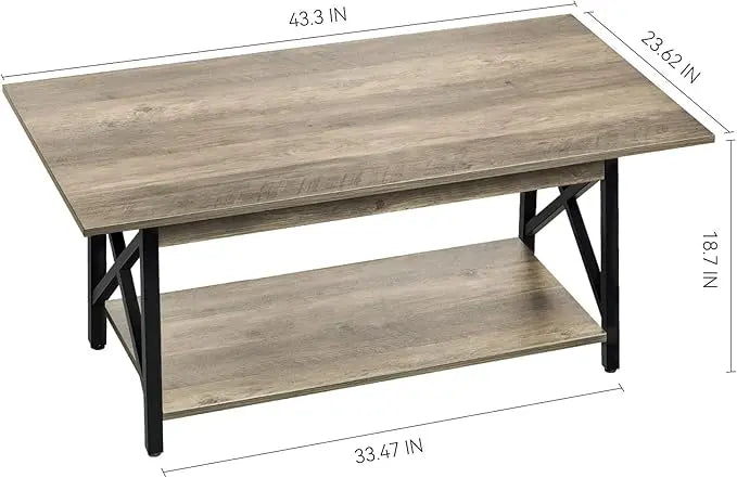 About This LARGE COFFEE TABLE: Farmhouse Rustic coffee table with dimension: 43.3 x 23.6 x 18.7 inches(LxWxH), Height Between Shelves...