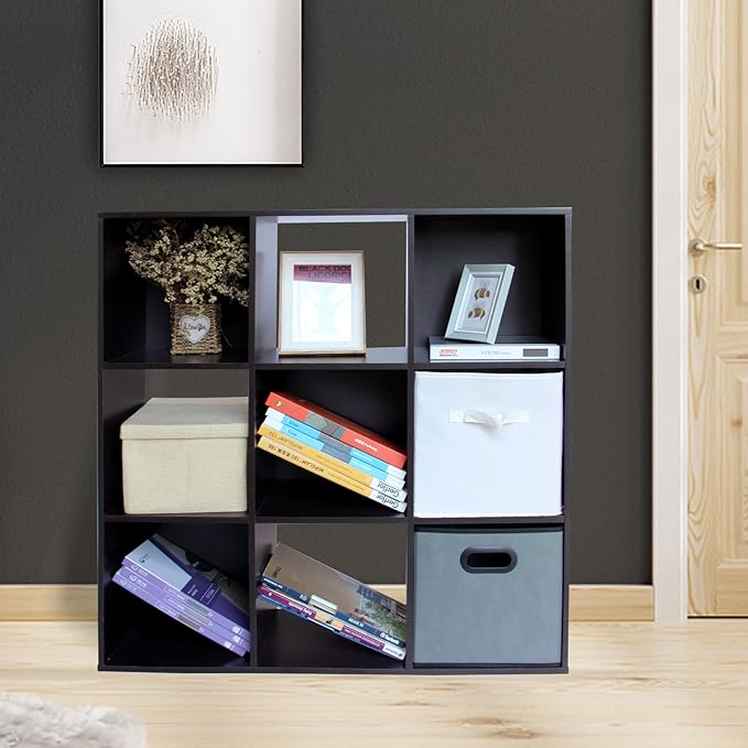 PACHIRA US 9 Cube Storage Shelf Organizer, Heavy Duty Wooden Closet Cabinet, File Organizer Rack Display Cube Bookshelf Compartments, Dark Brown