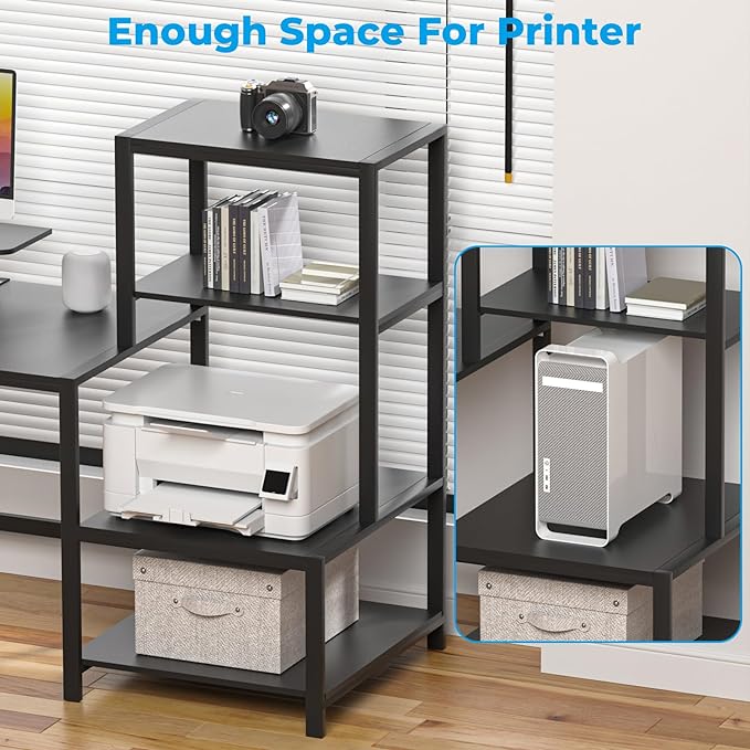 About This LARGE COMPUTER DESK WITH PRINTER SPACE: The office desk features 4 layers open-sided shelves. The middle shelf provides...