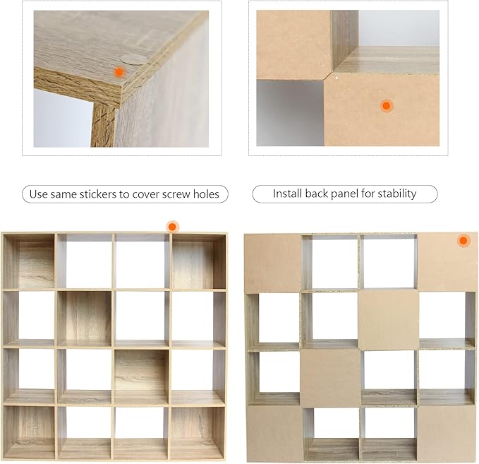PACHIRA E-Commerce 16 Cube Closet Cabinet, Unit Shelf, Wooden Storage Cube, Bookshelf File Organizer Rack in Living Room, Bedroom, Study, each cube 11.22", OAK