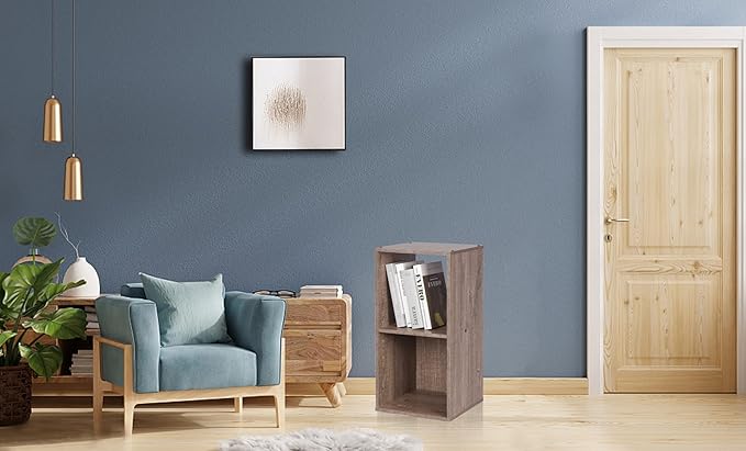 PACHIRA US 2 Cube Storage Organizer, Open and Enclosed MDF Cubical, Wooden Stackable Bookshelf, Modern Bookcase, Rustic Brown Oak