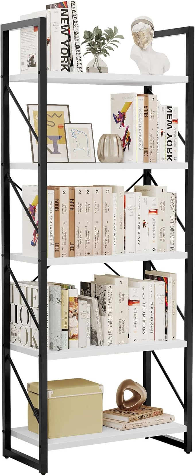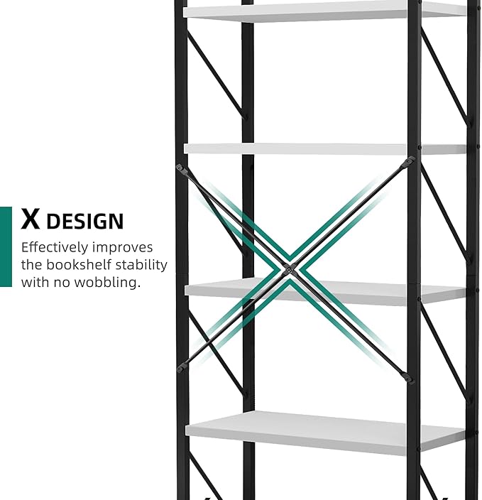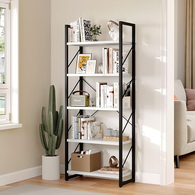 YITAHOME 5-Tier Bookshelf, Freestanding Black and White Book Shelf, Modern Minimalist Open Display Storage Book Shelves Standing Shelving Unit for Living Room Bedroom Home Office, White