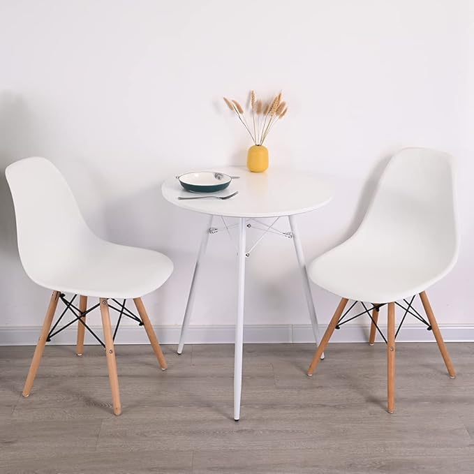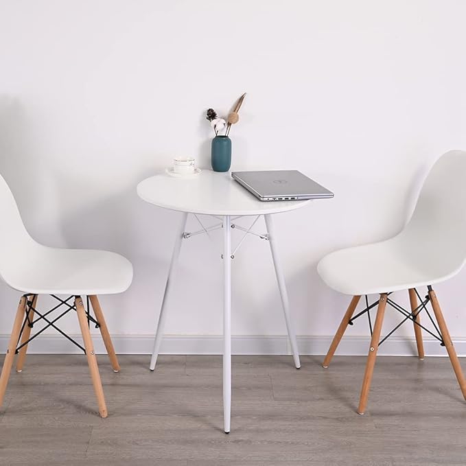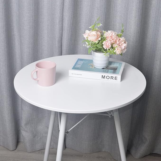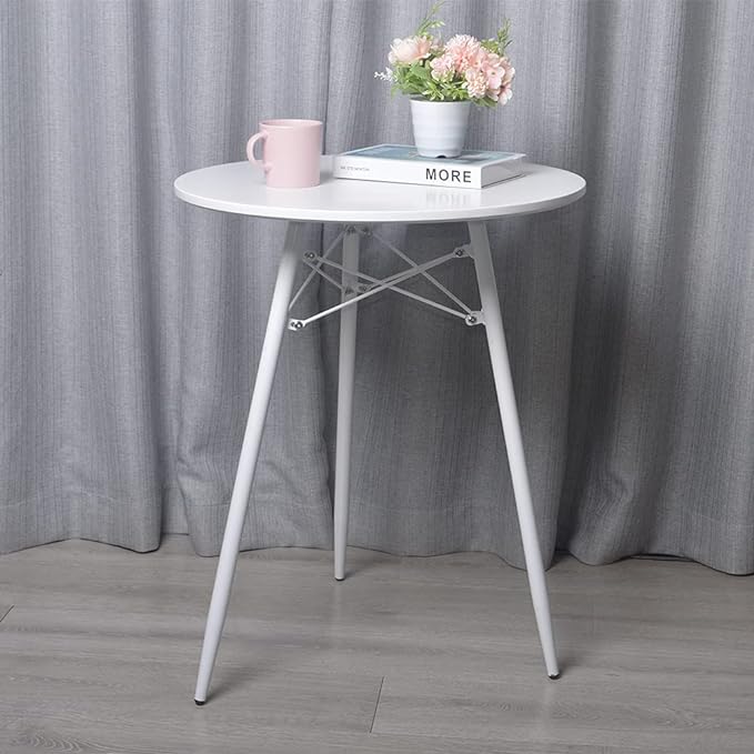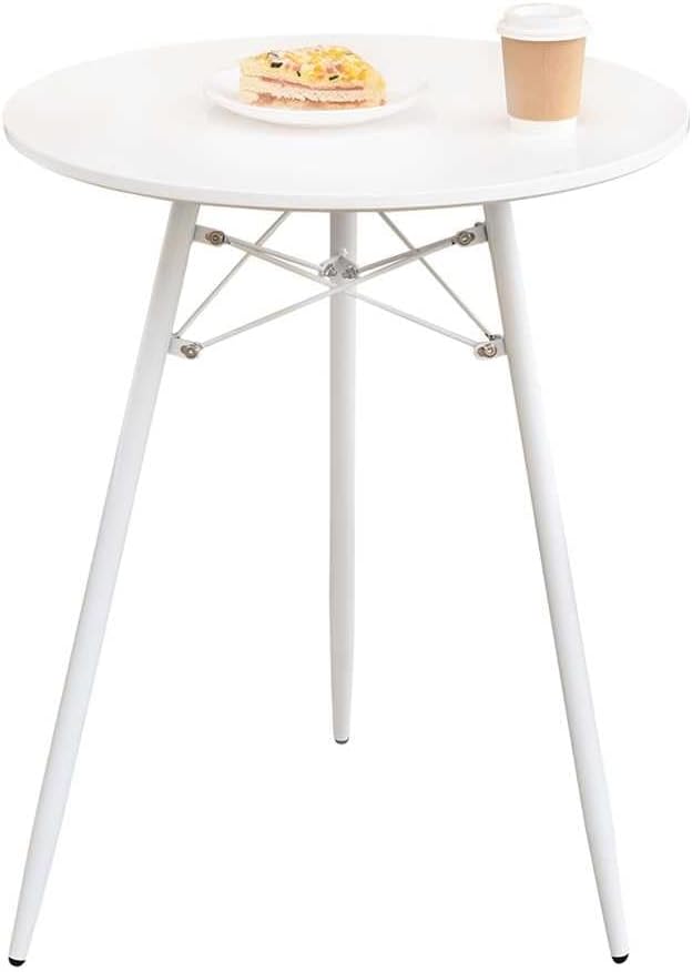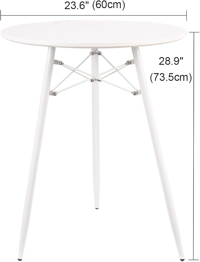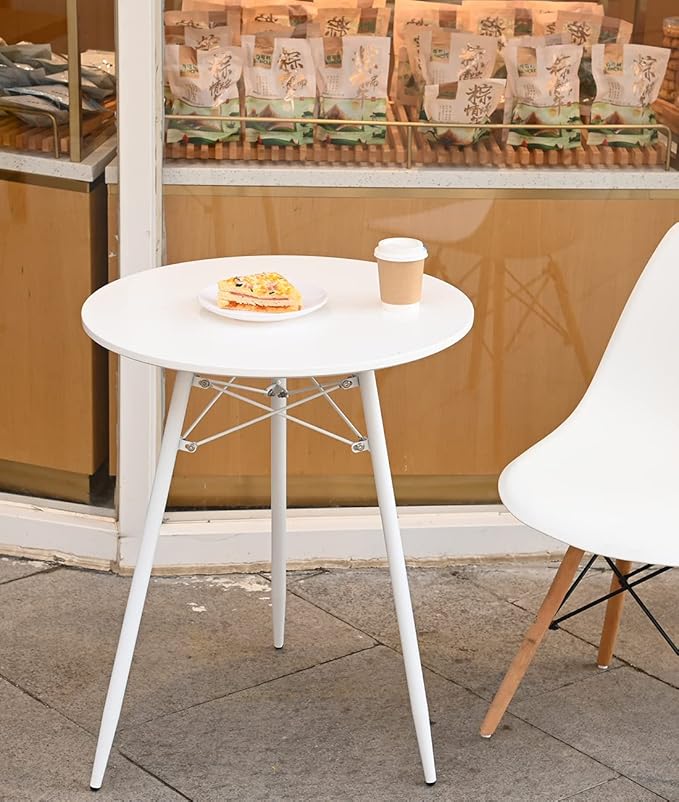 Small White Round Dining Table for 2 Bistro Table Dia 23.6" Simple Modern Round Table with Wood Top Metal Legs for Small Place Home Kitchen Cafe Office Conference