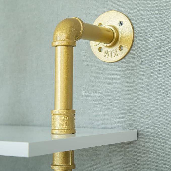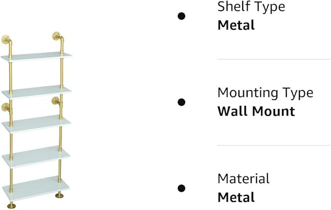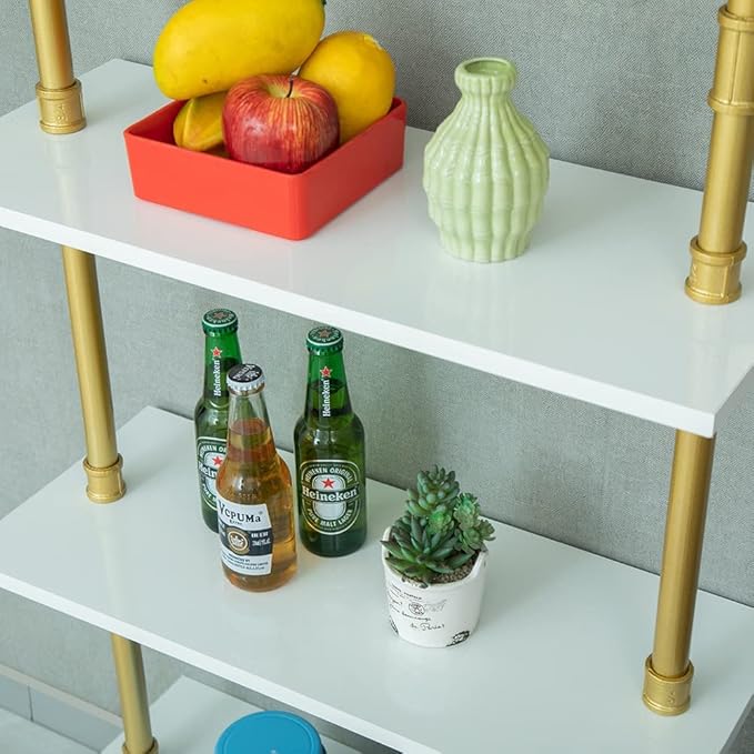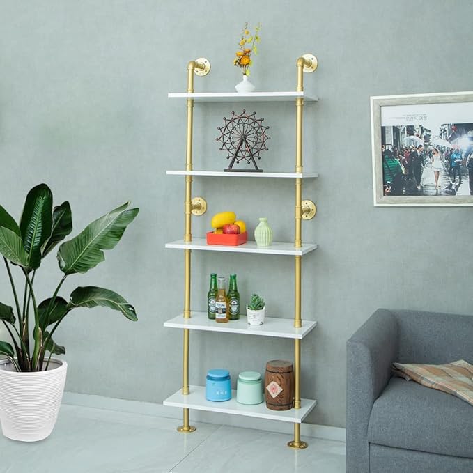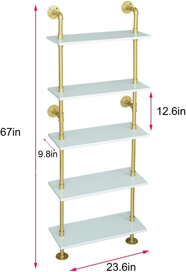 5 shelf Modern Gold Bookshelf, Wall Mount White Bookcase, Ladder Shelf with Metal Frame, Display Shelf Shelves for Living Room/Home/Office