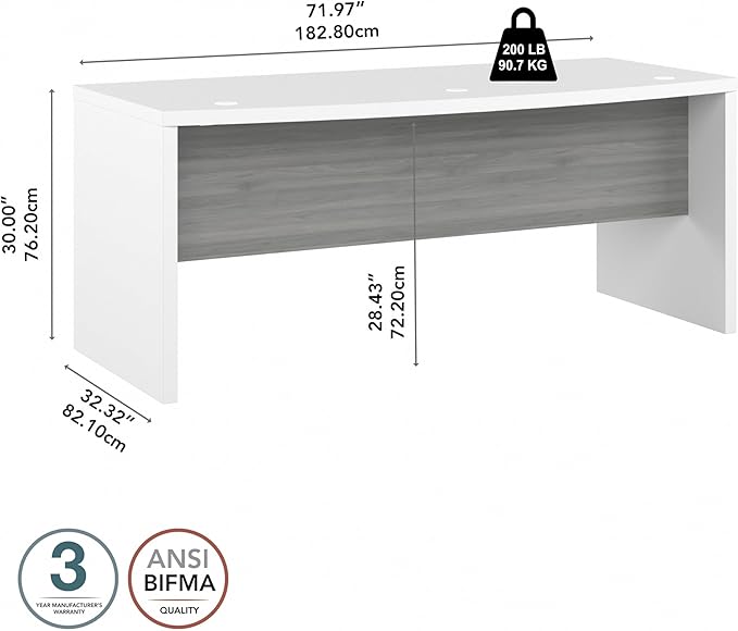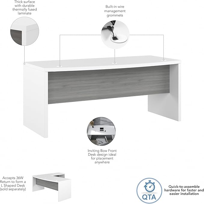Bush Business Furniture Echo Bow Front Desk, 72W, Pure White and Shiplap Gray