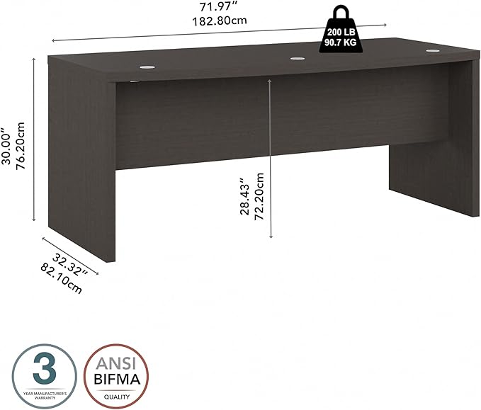 About This 72W x 32D x 30H Bow Front Office Desk offers a commercial quality workstation with contemporary charm Durable...