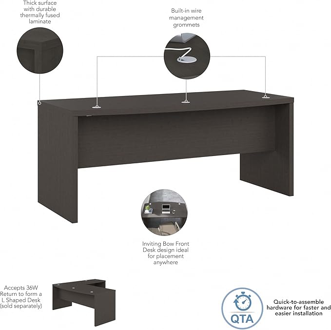 Bush Business Furniture Echo Bow Front Desk, 72W, Charcoal Maple