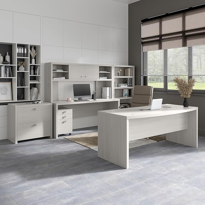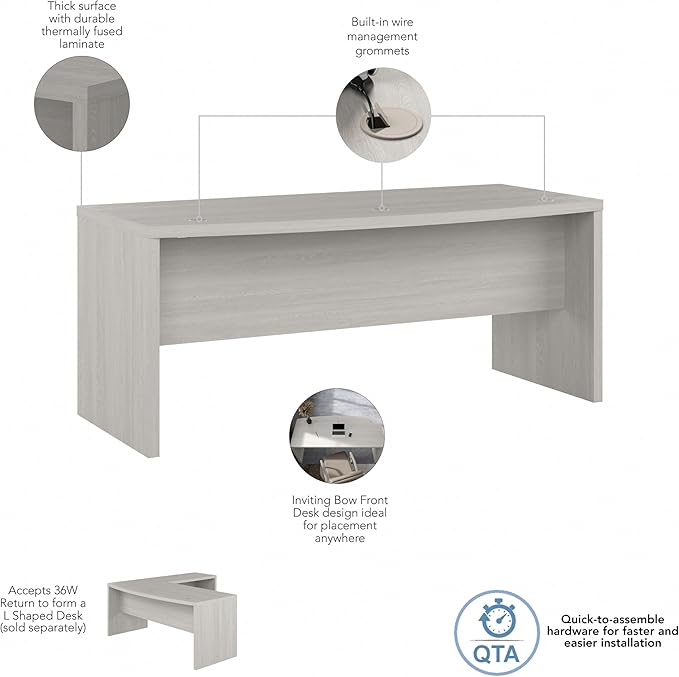 Bush Business Furniture Echo Bow Front Desk, 72W, Gray Sand